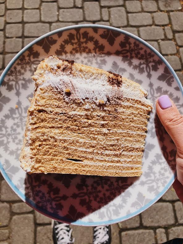 Próbowałyśmy również zupy solianki (rosyjska zupa na dziczyźnie zakwaszona sokiem z ogórków z kaparami, oliwkami, przysmażoną kiełbasą , kwaśną śmietaną i cytryną), a także pielmieni (małe rosyjskie pierożki) z mięsem oraz z jesiotra mazurskiego.