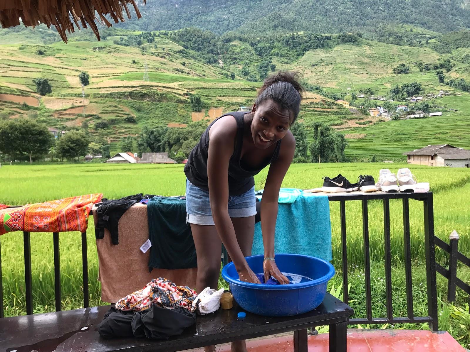 - Oddajemy rzeczy do prania. To zdecydowanie lepsza opcja (dla mnie), korzystałam z niej średnio co 3 dni. Każdy hostel, „kwatera”, „B&B”, sklep czy nawet prywatne domostwo przy drodze posiada taką usługę. Cena to 1$ za 1 kg ubrań, a w przypadku butów 1$ za parę. Przychodzimy wieczorem (w Azji ten termin oznacza do godziny 18-19), wszystko zostaje przy nas zważone, płacimy i następnego dnia rano odbieramy pachnące ciuszki. Najlepiej zapisać sobie co oddajemy, bo zdarzyło się, że zawieruszyły się nam pojedyncze fatałaszki czy skarpetka, ale wystarczyło opisać dokładnie zagubioną rzecz i zawsze dokładnie jej szukali.