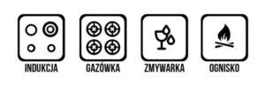 Kubki można myć w zmywarce. Działają na kuchence indukcyjnej, gazowej, elektrycznej a nawet na ognisku (ale mogą się usmolić).
